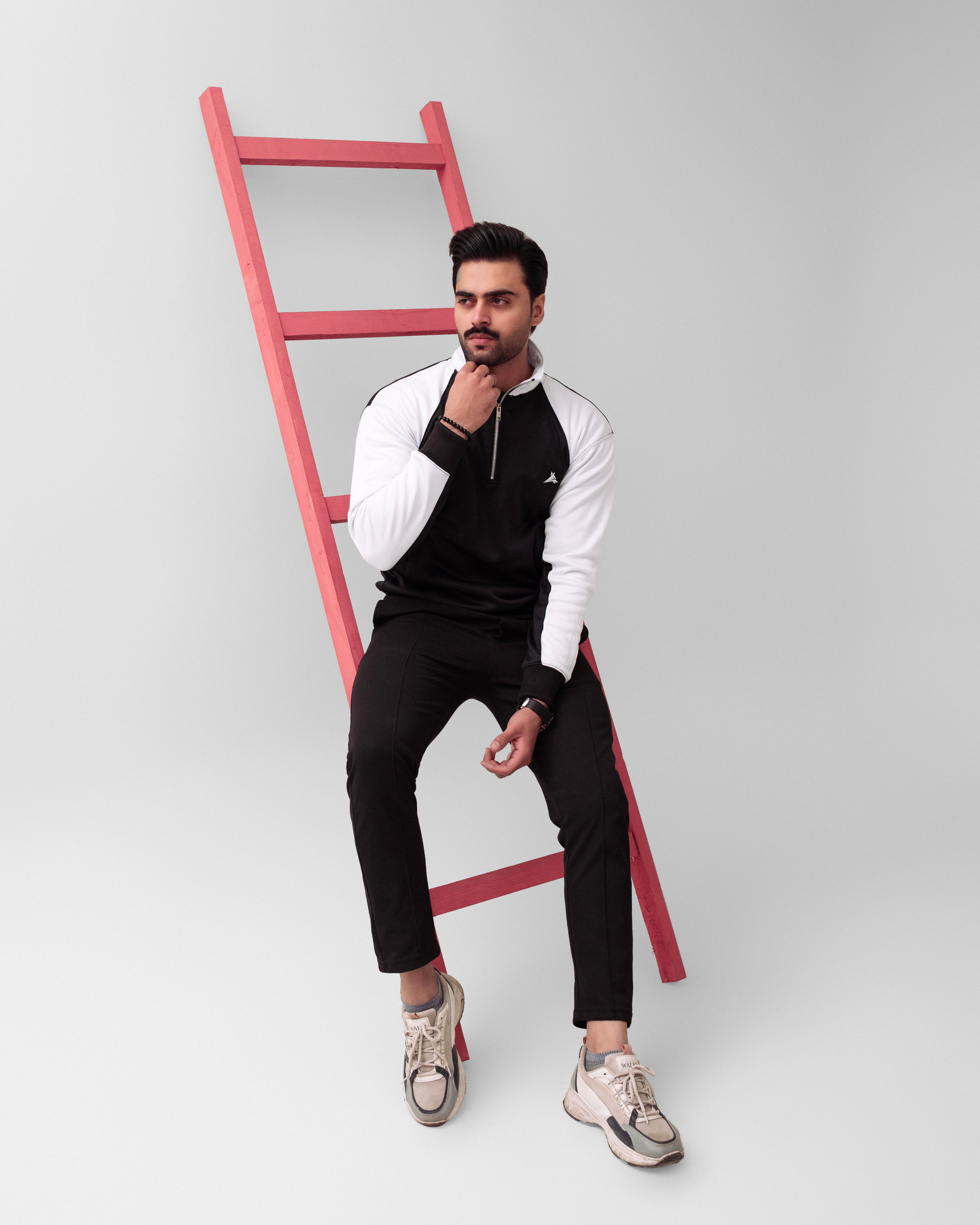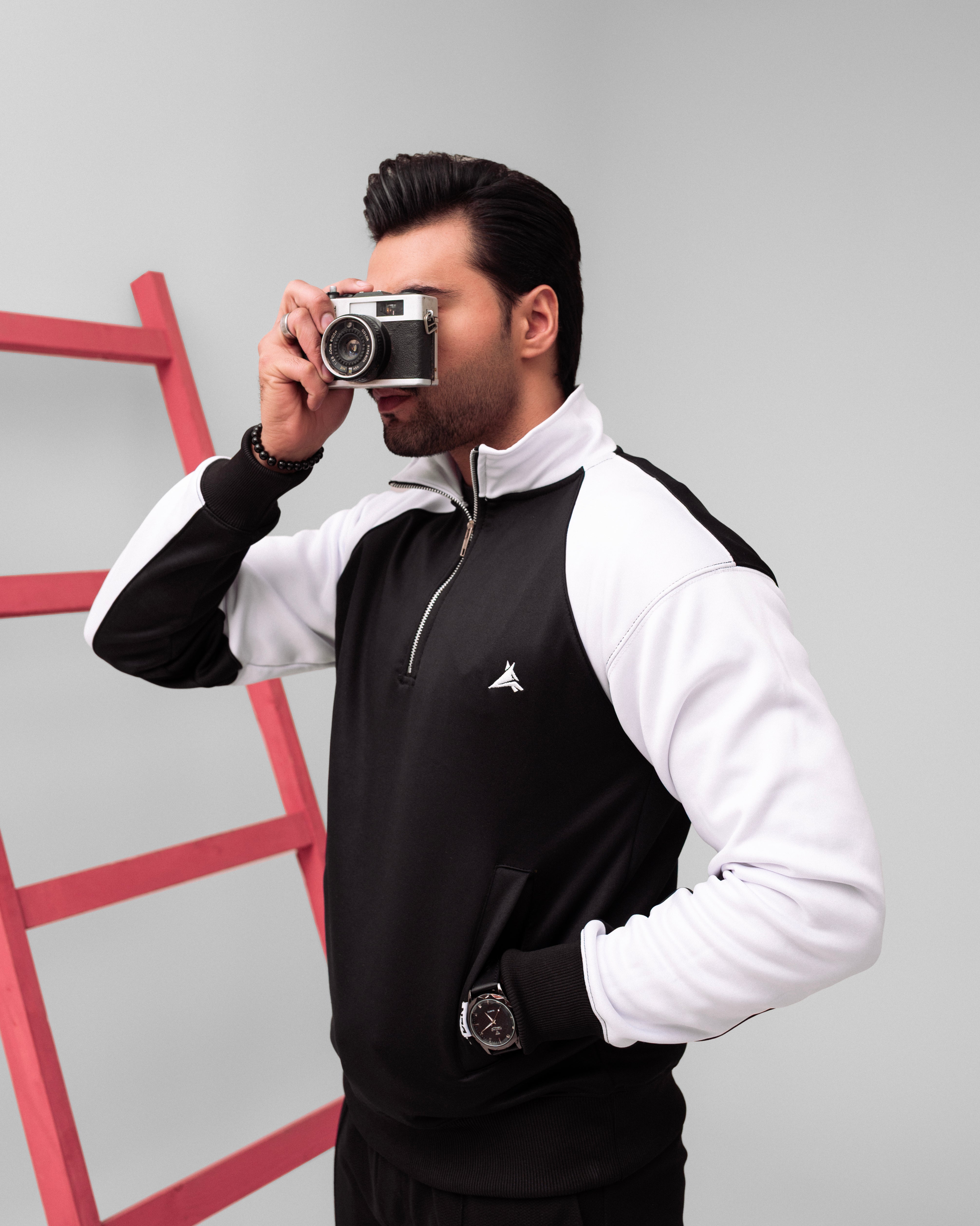 Black & White Quarter Zipper Jacket Premium Quality (unisex)