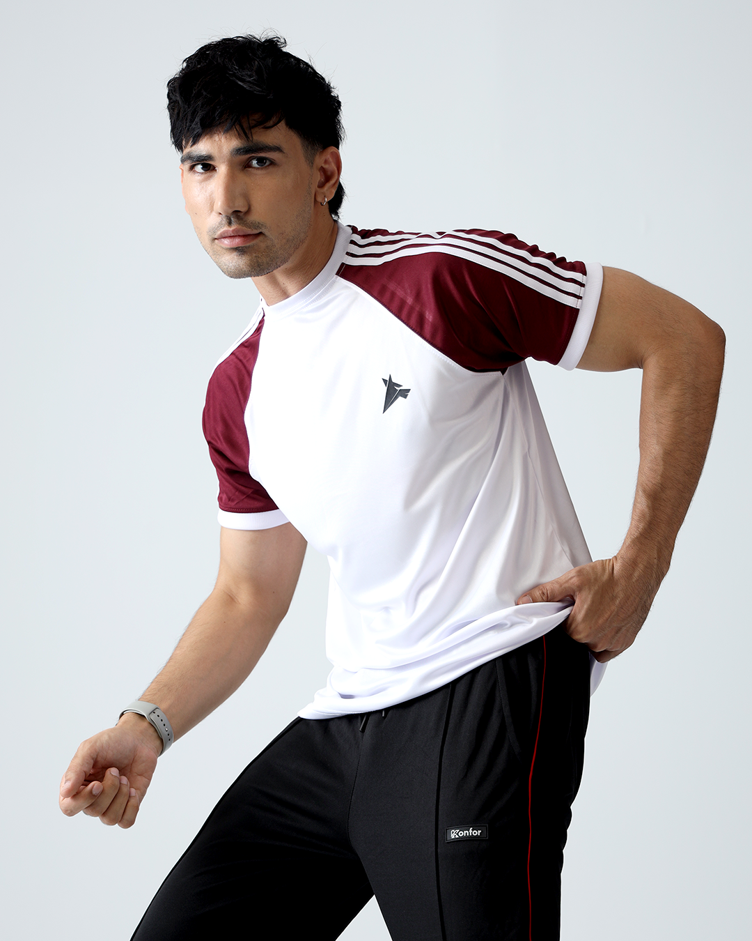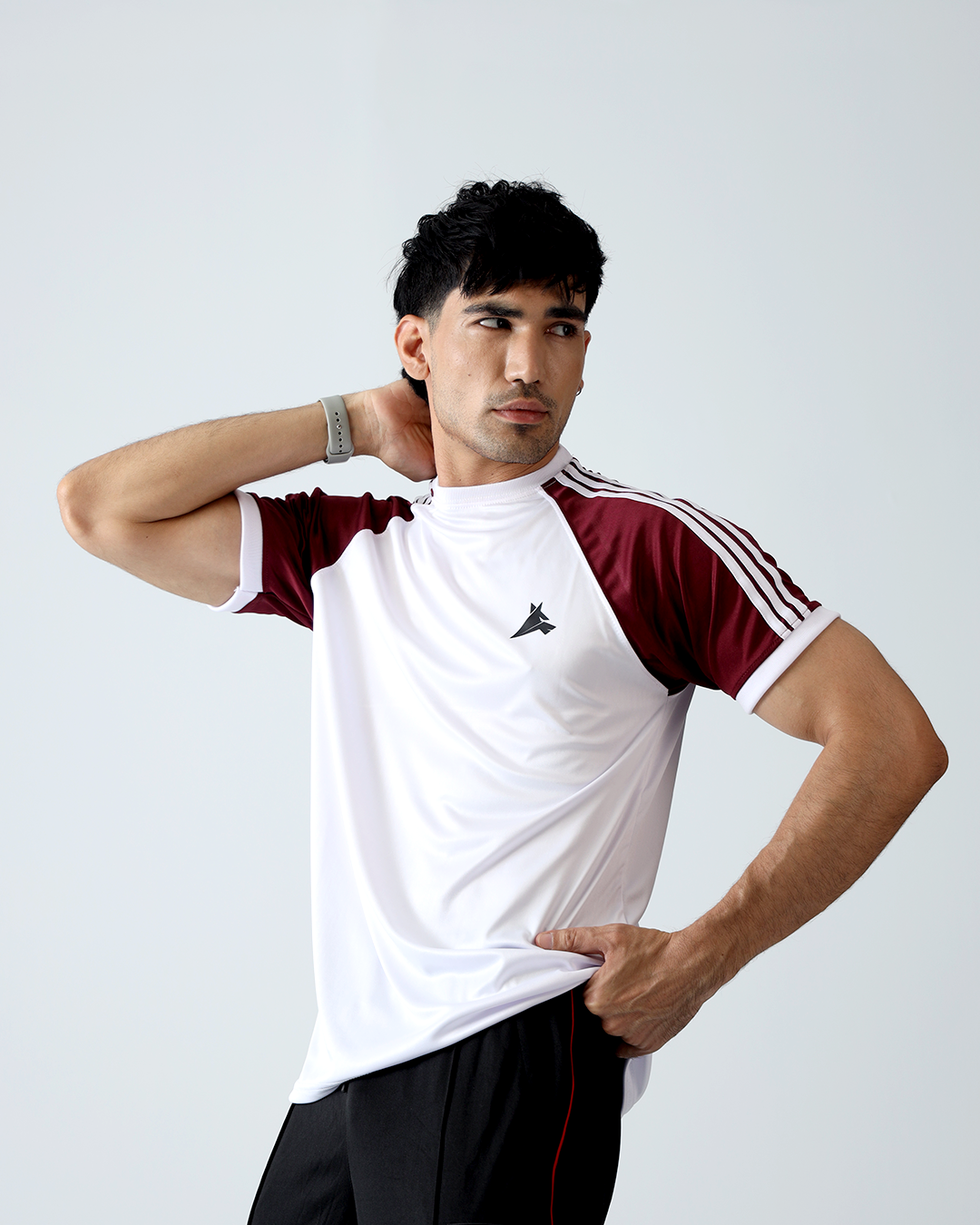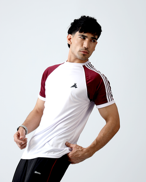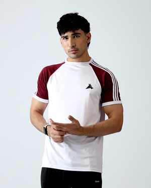 Maroon & White Tri-liner Premium Quality Dri-fit T-shirt (Unisex)